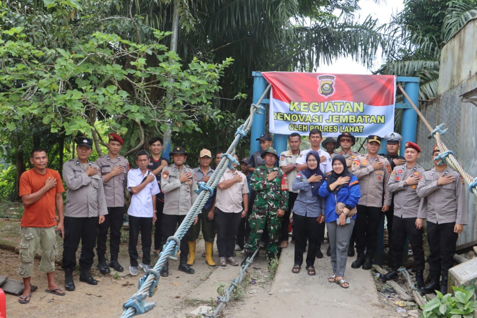 Lahat.Kabardaerah.Com. Humas Polres Lahat, pada hari rabu 04 maret 2026, Kapolres Lahat AKBP Novi Edyanto SIK.MIK, yang diwakili Waka Polres Kompol Liswan Nurhapis SH, dan didampingi Kabag Ops Kompol Sulis Pujiono SH, Kapolsek Merapi Barat Iptu Candra Kirana SH.MH memimpin kegiatan gotong royong bersama masyarakat perbaikan jembatan gantung desa Negeri Agung kecamatan Merapi Barat. Kegiatan dilaksanakan sebagai bentuk kepedulian terhadap keselamatan dan kenyamanan pengguna jalan, khususnya di wilayah pedesaan yang setiap hari bergantung pada jembatan tersebut untuk aktivitas ekonomi dan pendidikan.